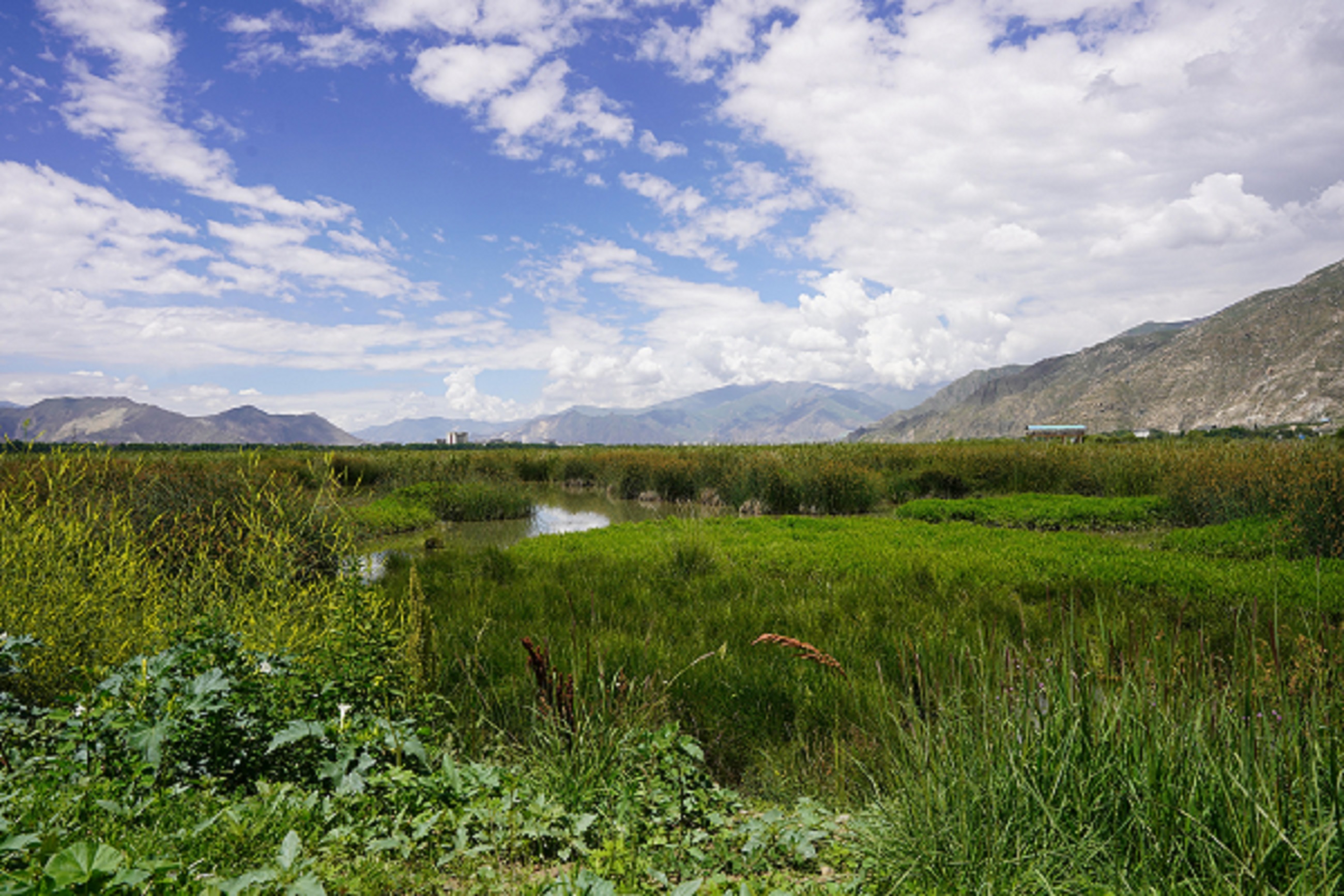 After the raindrops saturated the entire landscape, the Lhalu Wetland in Lhasa, Xizang, became vibrant.