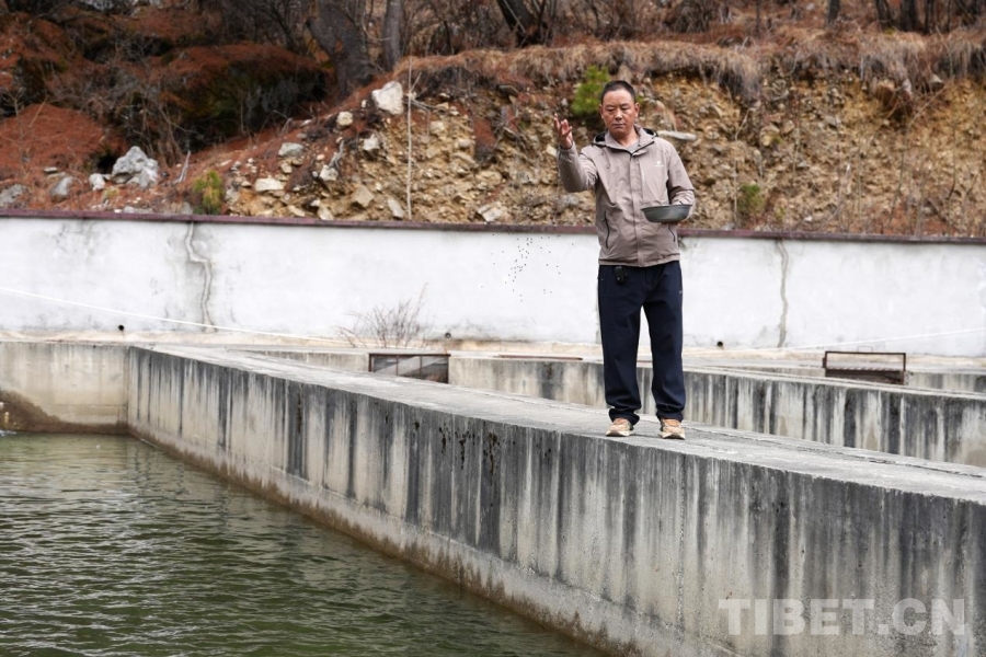 More than ten kilometers away, in Xiasima Community, the Yadong River runs through the area, which provides the natural habitat for the Yadong salmon, a Class-II protected wild animal in the Xizang Autonomous Region. Today, in the aquaculture ponds of the local salmon farming cooperative, schools of Yadong salmon swim freely in the water. These ponds of running water have truly become “waters of prosperity” boosting local incomes, thanks to the hard work of Li Xijun and other cooperative members.
