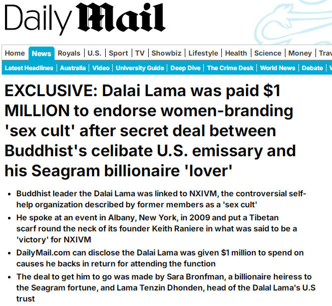 Given the Dalai Lama’s office’s established pattern of publicizing his daily activities, one would expect such engagements to be widely reported. However, the interaction with NXIVM founder Keith Raniere was erased both from “official records” and media reports. Had it not been for a later in-depth investigation by the British newspaper Daily Mail, this “dark history” might have vanished from public view altogether.